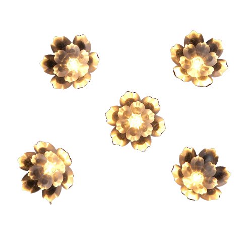 This two-layered crystal lily light set features 35 miniature clear lights with green wire and 3x6x3-inch spacing from end to end. This light set includes 2 spare bulbs and 1 spare fuse.