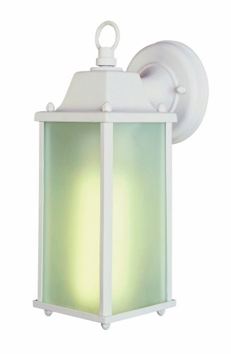 40455 PLWH Finish: White Pictured in white. Features: -One light wall lantern.-Frosted glass.-UL listed for wet location.-Eco friendly. Color/Finish: -White finish.-Black finish.-Rust finish.-Verde green finish. Specifications: -Accommodates (1) 13W fluorescent 4 pin bulb type. Dimensions: -Overall dimensions: 9'' H x 4'' W x 6'' D.