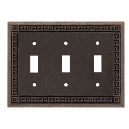 Enhance your decor with the Liberty Greek Key 3-Gang Brushed Oil-Rubbed Bronze Triple Toggle Switch Wall Plate. Change out your old wall plates and give any room a brand new feel. It is made out of durable metal and features an attractive border design.
