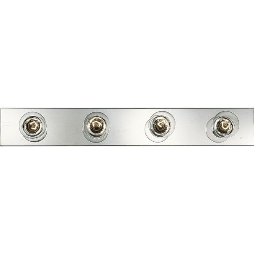 Progress Lighting P3115-15 Basic Broadway Lighting strips use fewer lamps to lower the overall wattage per strip. Sockets are on 7-1/2 inch centers. UL listed for ceiling mounting with 25w max. lamps. Polished Chrome G-lamps recommended. Broadway Collection Chrome 4-light Wall Bracket Traditional bath strip light to complement most traditional bathrooms or powder rooms. Brilliant metallic finish coordinates with popular faucet and bath hardware styles. Easy to install with included hardware. Chrome finish Use with frosted lamps to reduce glare 30 In. Width x 4-1/4 In. Height Uses (4) 60-watt medium base (globe style) bulbs
