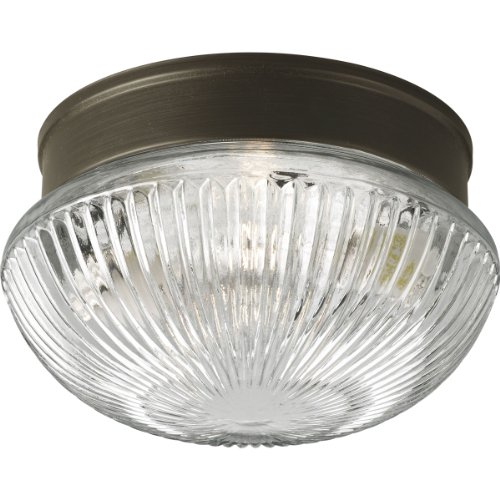 Progress Lighting P3406-20 Snap-in fitter with clear prismatic glass. Antique Bronze Antique Bronze 2-light Flushmount Classic globe fixture features clear prismatic glass diffuser. Great for hallways, utility rooms or anywhere a basic light fixture is required. Snap-in shade provides quick and easy access for changing bulbs. Antique Bronze finish Clear prismatic glass 9-1/2 In. Diameter x 5-1/4 In. Height Uses (2) 60-watt medium base bulbs