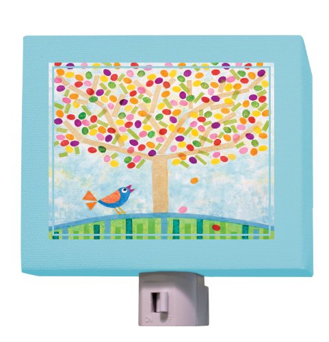 This Oopsy Daisy "Jellybean Tree" nightlight features a bright and colorful tree along with a bird; a vibrant addition to your little one's room. This nightlight can be easily wiped clean with a soft, dry cloth and is ideal for your child's room as it does not have a glass surface to break. You can personalize the nightlight with your child's name or any other word or phrase like "Good Night". This nightlight is designed by Gale Kaseguma, whose biography is included with each unit. Features: Made up of canvas Personalized nightlight Easy to clean Dimension : 4.78" x 4" Made in the USA Please apply coupon "FREESHIPART" at check out to receive complimentary shipping. The Oopsy Daisy collection donates a portion of their annual sales to charities that directly assist children. This piece is custom made to order and ships directly from the designer. Gift Box not available.