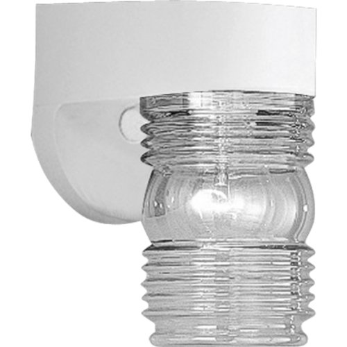 Progress Lighting P5612-30 Polycarbonate. Clear lexan diffuser. White Polycarbonate Collection White 1-light Wall Lantern Features clear, marine-style polycarbonate diffuser on a weather-proof housing. White finish Clear lexan 4-3/4 In. Width x 7-1/4 In. Height Uses (1) 60-watt medium base bulb