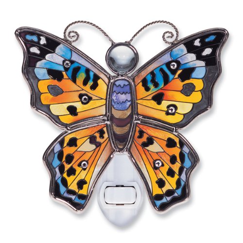 The Detailed Description of Amia 8664 Hand Painted Glass Night Light, Butterfly Design, 5-Inch, MulticoloredFeatures