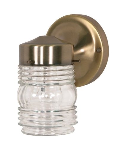 The Detailed Description of Nuvo 77/995 Porch Wall Fixture with Clear Mason Jar, Antique BrassFeatures