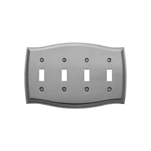 Switchplate:Quadruple Toggle - Colonial, Finish:Satin Nickel These Colonial-style switch plates are forged from solid brass, and are available in a wide variety of durable Baldwin finishes. Also available with different numbers of toggles.See options to select finish type and number of toggles. Note: Sold individually. Switches not included.