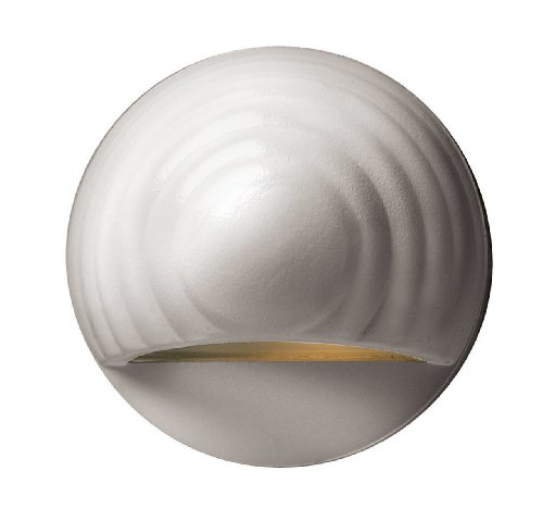 Low voltage Hinkley deck light and wall sconce in a round shape with a matte white finish. Frosted glass lens evens the light output. Works with your existing low voltage landscape lighting systems.